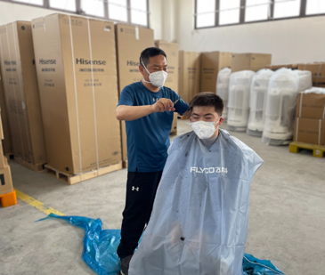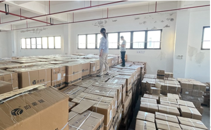 这批物资包装方式比较简单,到货时,多数包装已经破损,只能人工把重新分拣包装,罗文东从此变成了“袋”王,每天解决数以千计的“七天大礼包”,蓝色包装堆叠成了“袋”山。